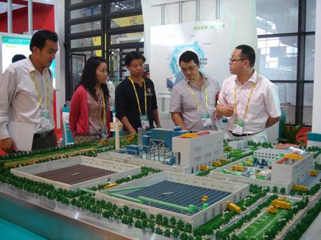 在展会现场,我公司通过模型展示、多媒体播放、展板图片展示以及现场技术人员的讲解相结合的方式,全方位地向中外宾客展示了公司环保产业的工程业绩,以及“三商合一”的经营模式。在为期6天的展会上,我们接待了众多中外参观者,广泛传播了公司品牌形象,也得到了一些市场信息。各事业部的业务人员将进一步跟进。